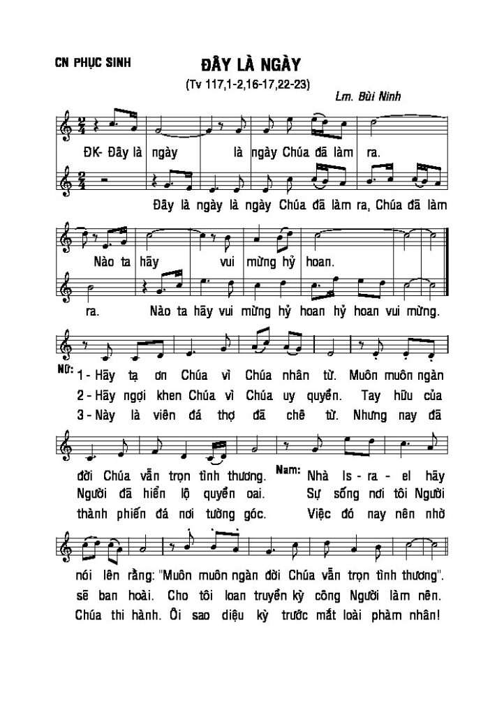ĐK. Đây là ngày (Đây là ngày) là ngày Chúa đã làm ra, Chúa đã làm ra. Nào ta hãy (Nào ta hãy) vui mừng hỉ hoan hỷ hoan vui mừng.