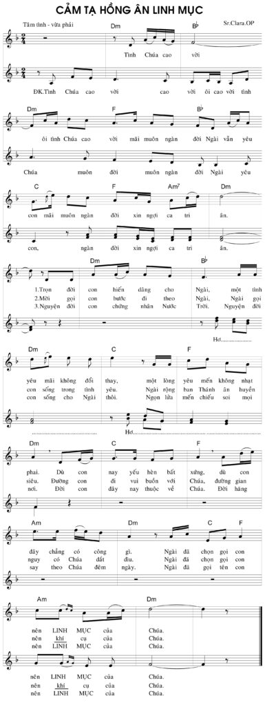 Lời bài hát Cảm Tạ Hồng Ân Linh Mục