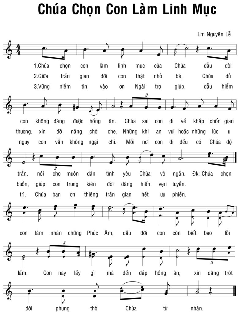 Pdf sheet nhạc ca khúc Chúa chọn con làm Linh mục | Tải pdf