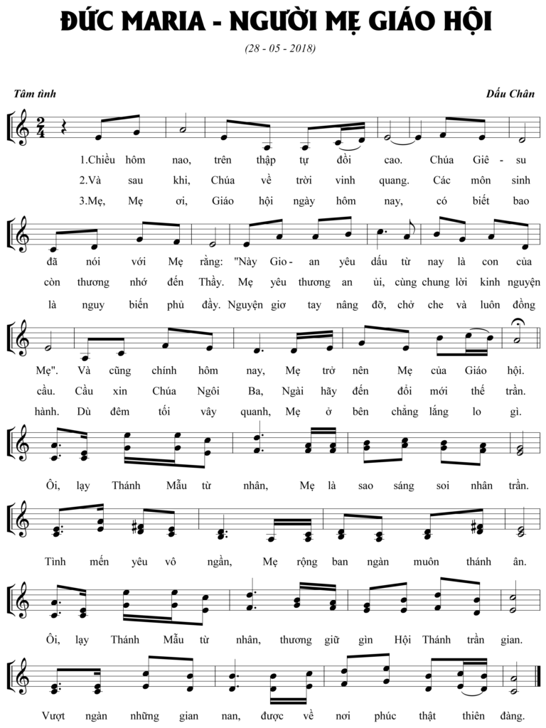 PDF Sheet nhạc bài hát Đức Maria – Người Mẹ Giáo Hội