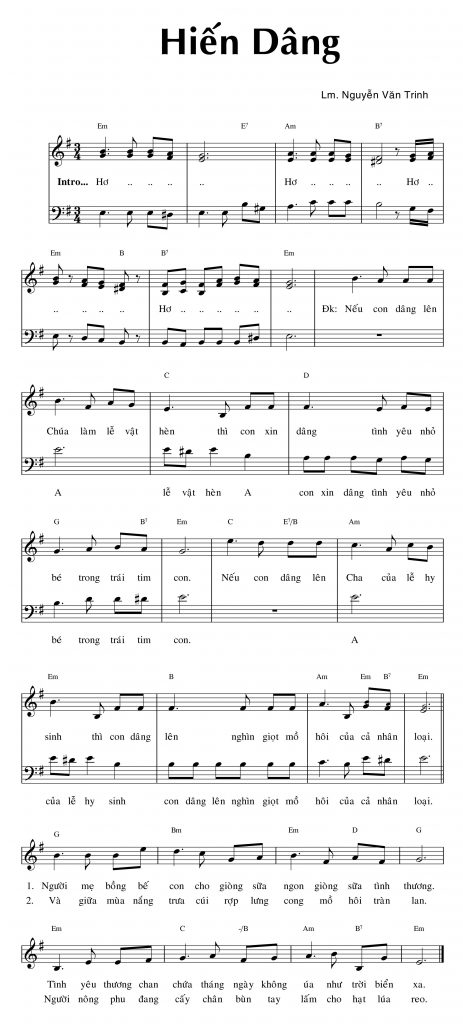 Ca khúc Hiến dâng được sáng tác bởi Linh mục Nguyễn Văn Trinh, được thể hiện bởi Gia Ân. Thanhcavn.com xin giới thiệu ca khúc Hiến dâng Pdf, mp3 và Lyrics lời bài hát.