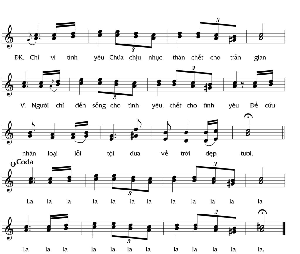 ĐK. Chỉ vì tình yêu Chúa chịu nhục thân chết cho trần gian. Vì Ngài chỉ đến sống cho tình yêu chết cho tình yêu, để cứu nhân loại lỗi tội, đưa về trời đẹp tươi.