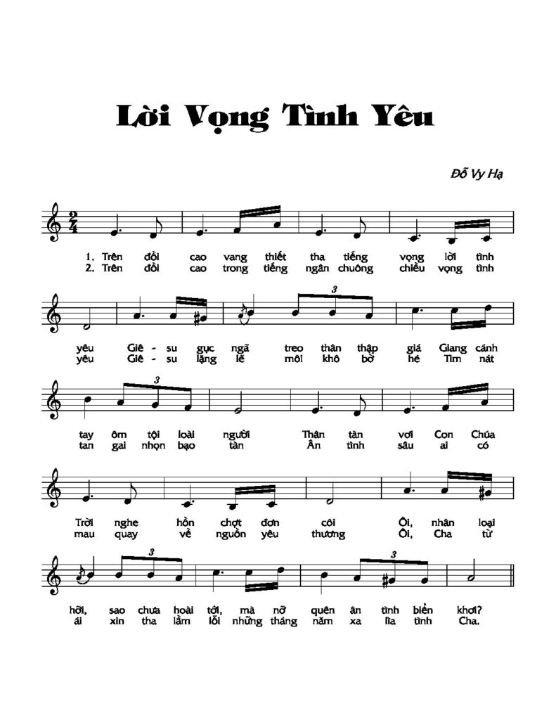 Lời vọng tình yêu được sáng tác và thể hiện bởi nghệ sĩ Đỗ Vi Hạ, bài hát nói lên tình yêu nhân loại vô bờ bến của Chúa Giêsu trước sự vô tâm của nhân loại.