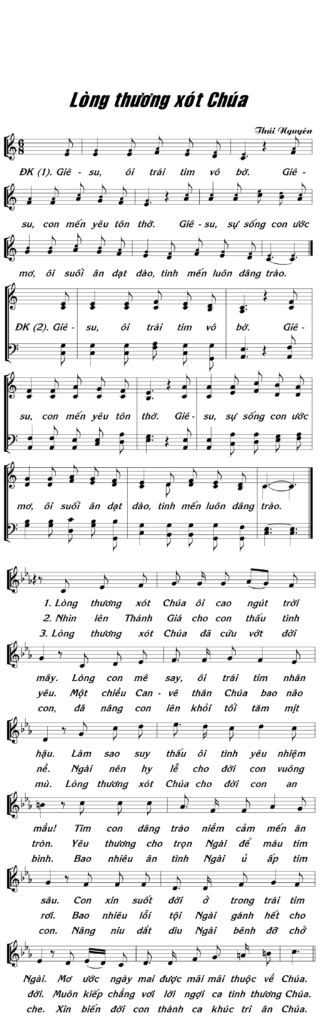 - Lòng thương xót Chúa ôi cao ngút trời mây. Lòng con mê say, ôi trái tim nhân hậu. Làm sao suy thaáu ôi tình yêu nhiệm mầu! Tim con dâng trài niềm cảm mêns ân sâu. Con xin suốt đời ở trong trái tim Ngaì. Mơ ước ngày mai được mãi mãi thuộc về Chúa.