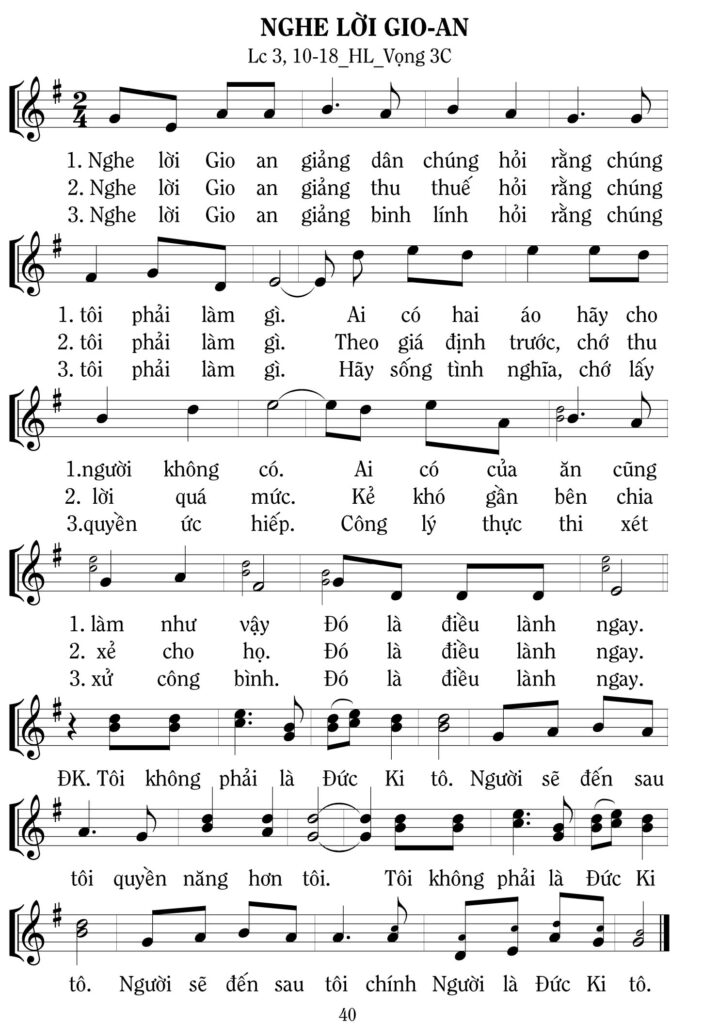 Phân khúc bài hát Nghe lời Gioan