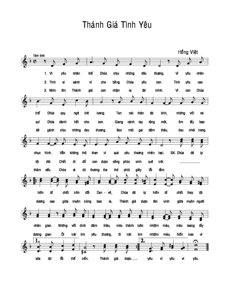 Ca khúc Thánh Giá Tình Yêu được sáng tác bởi nghệ sĩ Hồng Việt, thuộc chuyên mục nhạc mùa chay, trong bài viết này Thanhcavn.com xin gửi đến các bạn ca khúc Thánh Giá Tình Yêu bao gồm lời bài hát kèm file MP3 và PDF.