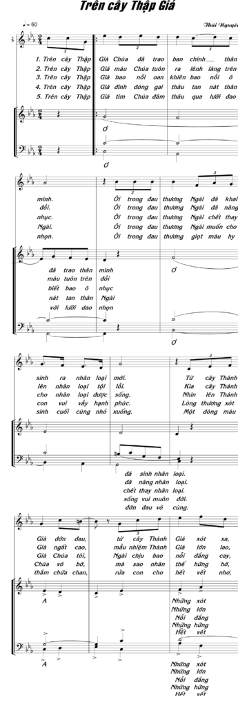 Ca khúc Trên Cây Thập Giá được Nghệ sĩ Thái Nguyên sáng tác và được ca đoàn Sao Mai thể hiện. Tại đây Thanhcavn.com xin gửi đến các bạn ca khúc Trên Cây Thập Giá có lời bài hát cùng file MP3 và file PDF. Chúng tôi sắp xếp lại như thế này để các bạn có thể hát theo và có thể tập học hát các bài hát Thánh Ca.